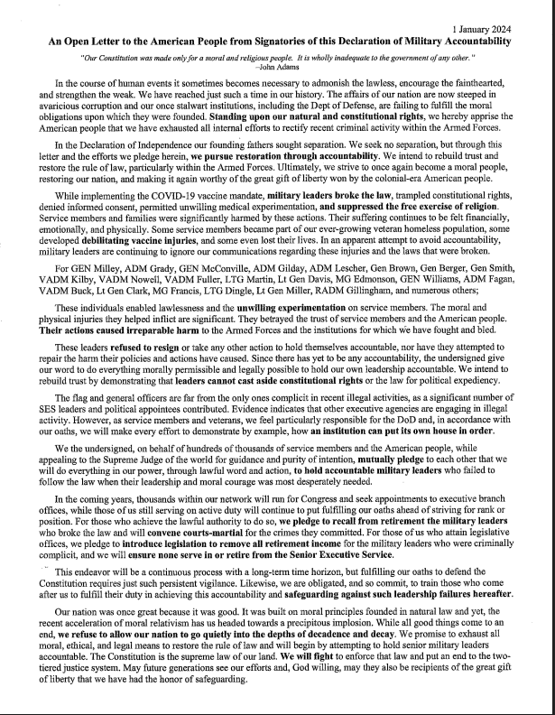 DECLARATION OF MILITARY ACCOUNTABILITY